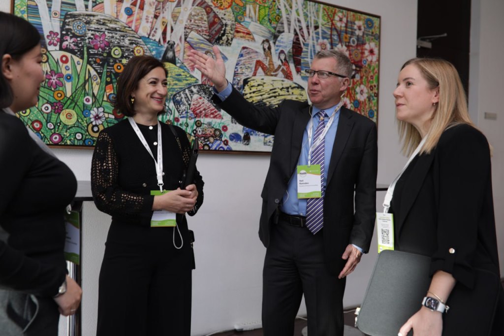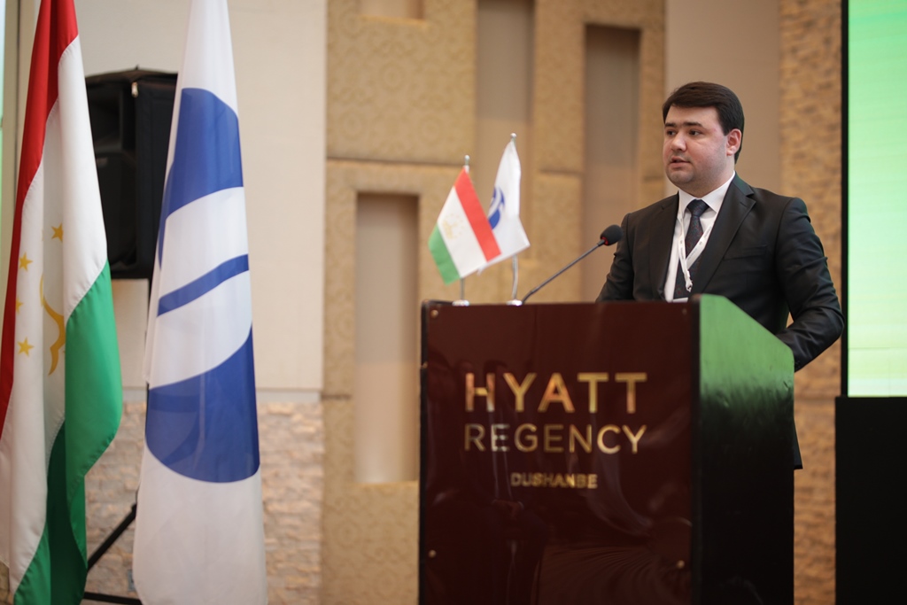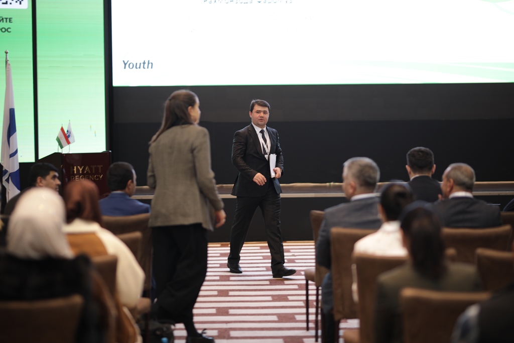 Открыли мероприятие глава ЕБРР в Таджикистане Хольгер Вифель и Фаромуз Рахмонзода, председатель совета по делам молодежи Нацбанка страны.