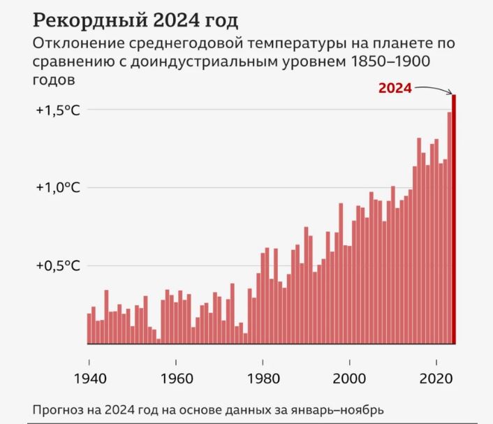 «Теперь уже можно с полной уверенностью утверждать, что 2024 год станет самым жарким годом в истории, — сказала замглавы C3S Саманта Берджесс. — Цели Парижского соглашения пока не нарушены, но сейчас как никогда необходимы амбициозные меры для борьбы с изменением климата».