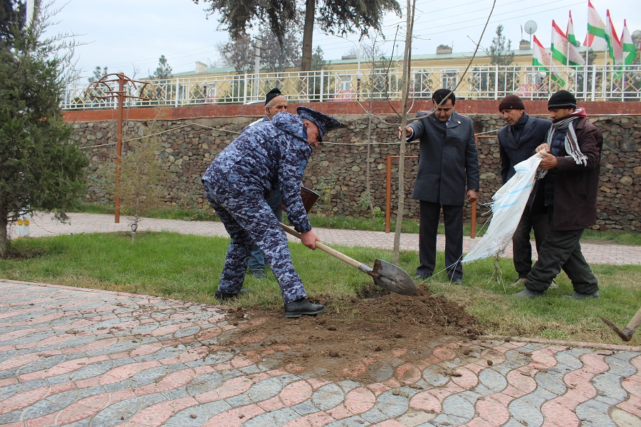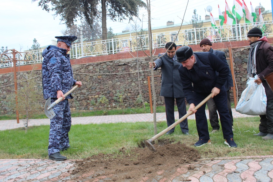 Глава области и мэр города также приняли участие в посадке деревьев на площади 70-летия Вахшской долины.