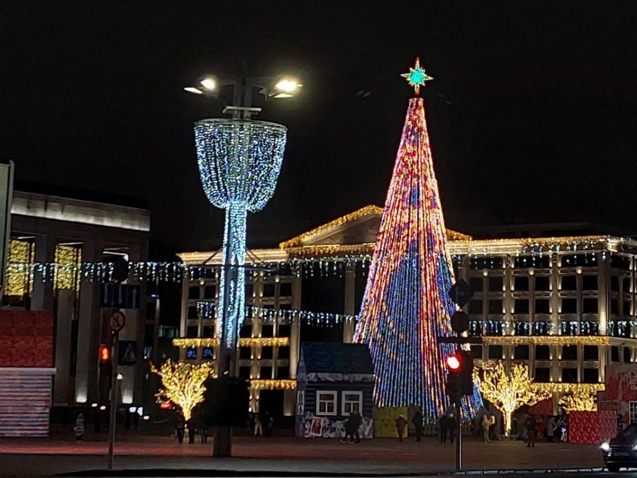 На Октябрьской площади Минска 8 декабря 2024 года засияла ёлка высотой 30 метров. Её декор включает 3,2 километра гирлянд, а также 20 тысяч пикселей и динамическое световое шоу, которое стало главной зимней достопримечательностью города.