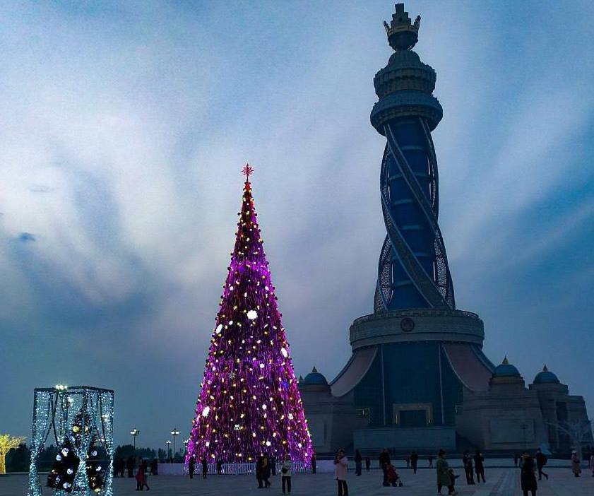 На главной площади Ашхабада 10 декабря 2024 года установили ёлку высотой 44 метра. Она украшена более 4 тысячами игрушек и 55 тысячами светодиодных лампочек. Вокруг ёлки разместились световые инсталляции, тематические скульптуры и сцена, на которой прошли концерты и шоу. Церемония зажжения огней стала настоящим праздником для всех жителей города. Надо сказать, что туркменская елка становится самой высокой второй год подряд.