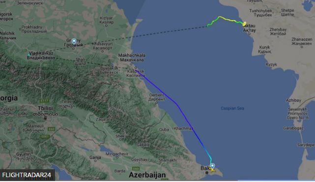 Судя по записи полета в онлайн-сервисе Flightradar24, самолет Embraer E190AR выполнял рейс J28243 из Баку в Грозный, когда примерно в 04:25 по всемирному координированному времени (07:25 по московскому) его отметка исчезла в районе города Каспийск.