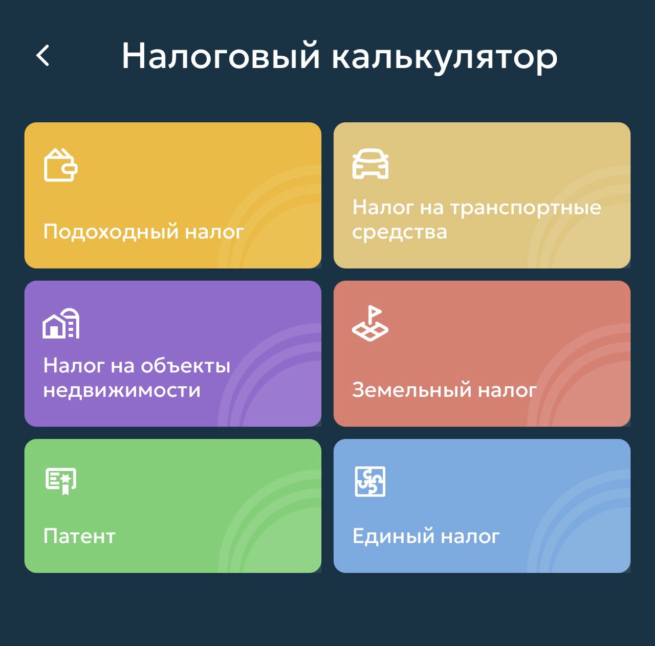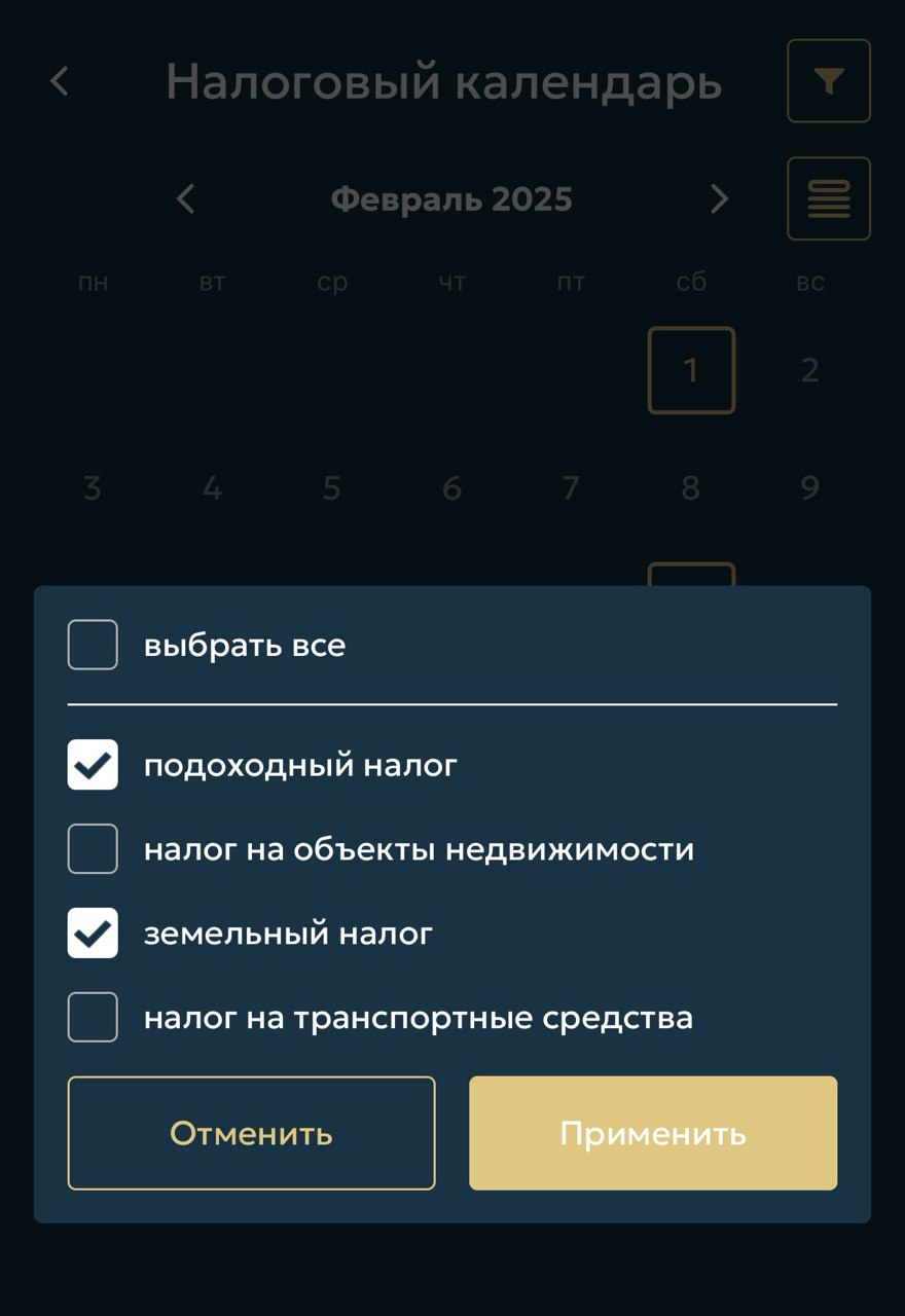 В приложении доступны налоговый калькулятор и календарь. С их помощью можно рассчитать различные виды налогов и запланировать их оплату.