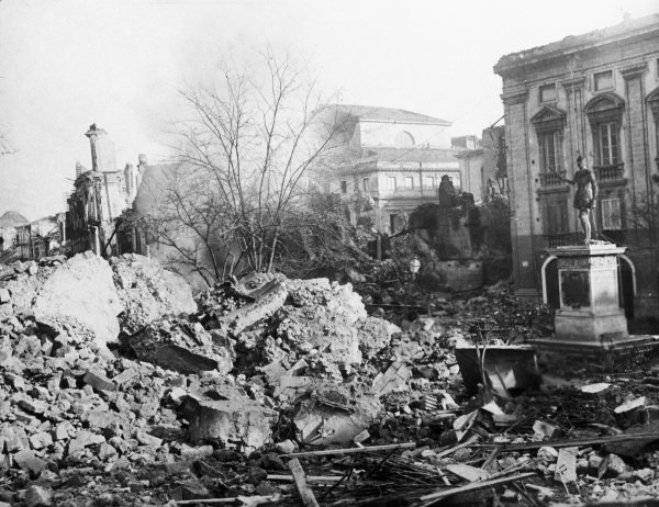 В 1908 году на острове Сицилия произошло крупное землетрясение. Главной жертвой природного катаклизма 28 декабря 1908 года стал цветущий город Мессина. Подземные толчки, сила которых достигала 7,5 балла по шкале Рихтера, унесли жизни более 75 тысяч человек, а вызванная ими волна цунами высотой 10 метров довершила разрушение города.