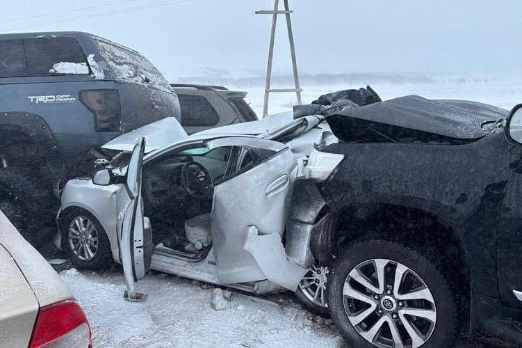 Причиной массового столкновения стали сильная метель и почти нулевая видимость на дороге.