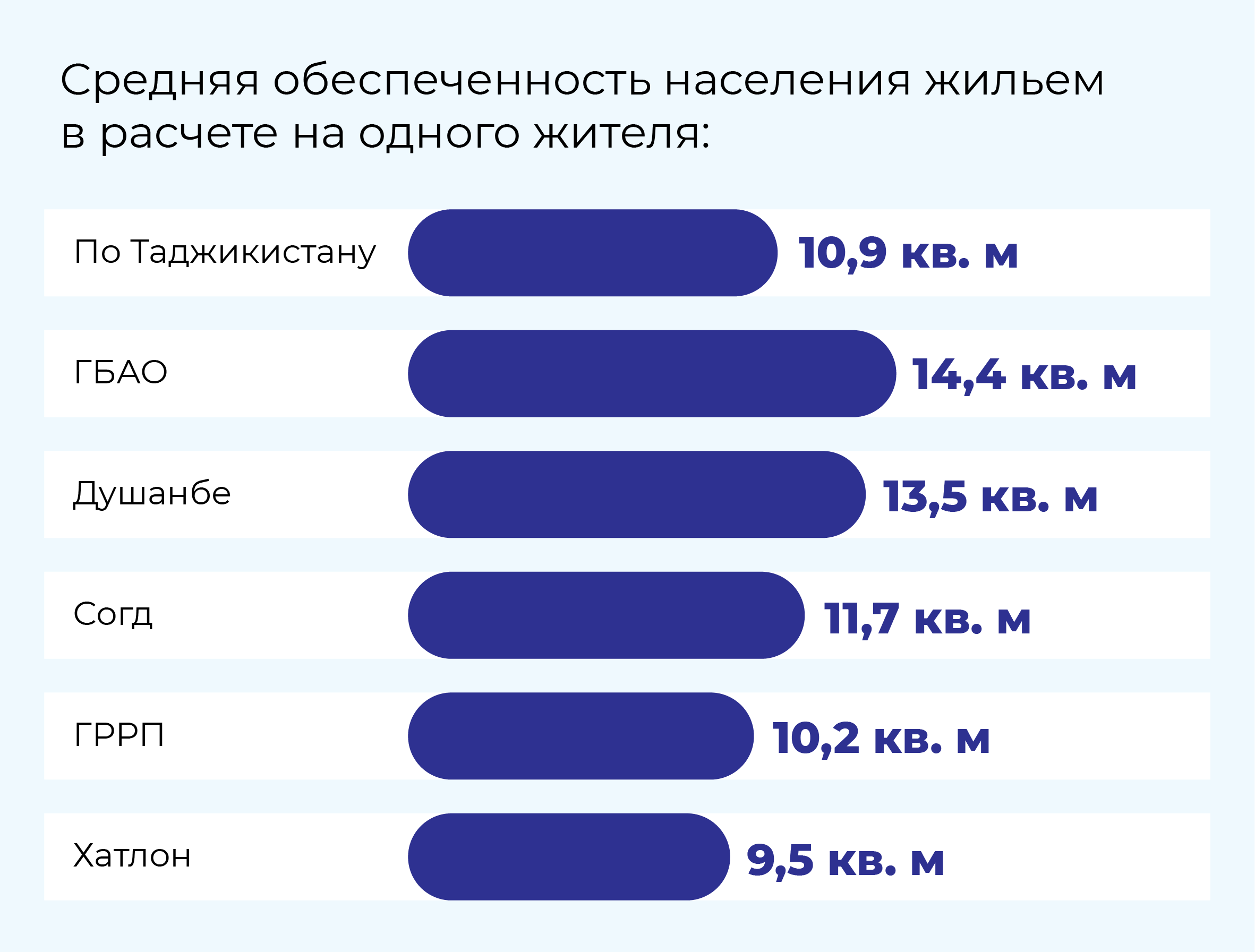В Душанбе на каждого жителя приходится 13,5 кв. м, в то время как в Хатлонской области этот показатель едва достигает 9,5 кв. м. Это создает проблему с обеспечением достойных условий для жизни и приводит к высокой плотности населения в отдельных регионах.