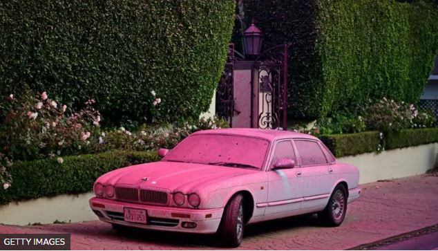 Окрашенные в розовый и красный районы Лос-Анджелеса выглядят сюрреалистично. Фотографии с места разлетаются по сети, демонстрируя масштабы бедствия и усилия спасателей.