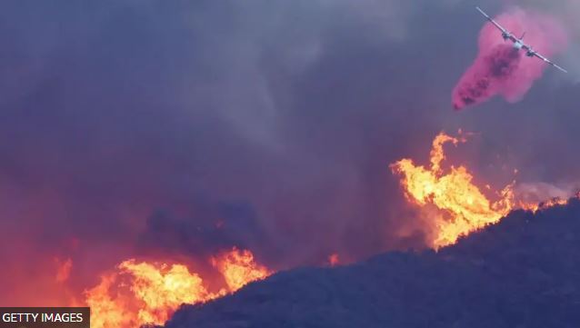 По словам местных властей, за последнюю неделю над Лос-Анджелесом и его пригородами распылили тысячи галлонов огнезащитного состава, или антипирена.