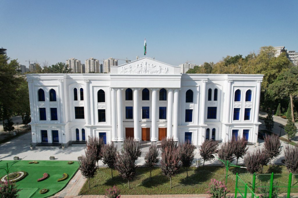 Это красивое современное здание, построенное в классическом стиле, возведено взамен ветхих хозяйственных построек на заднем дворе театра: в левой части расположен Колледж искусств им. Ахмада Бобокулова, в правой — Республиканский хореографический колледж им. Малики Собировой.