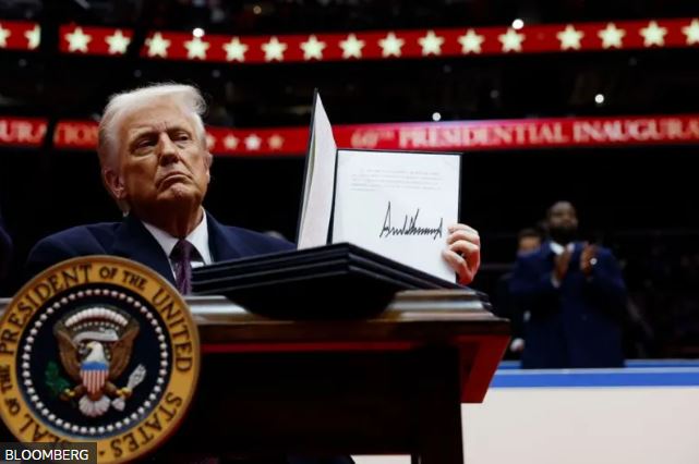 Перед прибытием в Белый дом Трамп снова выступил перед сторонниками в комплексе Capital One Arena, где также демонстративно подписал около 10 указов, в том числе о повторном выходе США из Парижского соглашения по климату и отмене 78 указов и распоряжений времен его предшественника Джо Байдена.