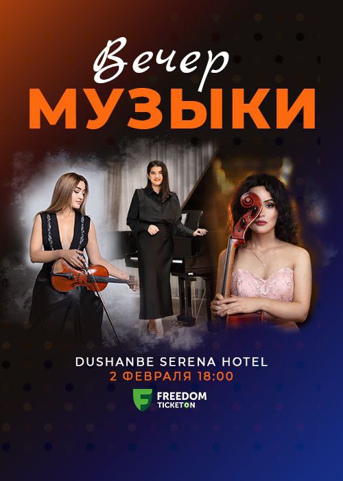 В зале отеля «Серена» 2 февраля в 18:00 пройдёт Вечер музыки с участием прекрасного трио: Марджоны Хасановой (виолончель), Дарико Гарибян (скрипка) и Асрины Бахромзода (фортепиано). Девушки давно покоряют сердца виртуозным исполнением, и теперь собрались вместе, чтобы порадовать жителей и гостей столицы магией живой классической музыки.