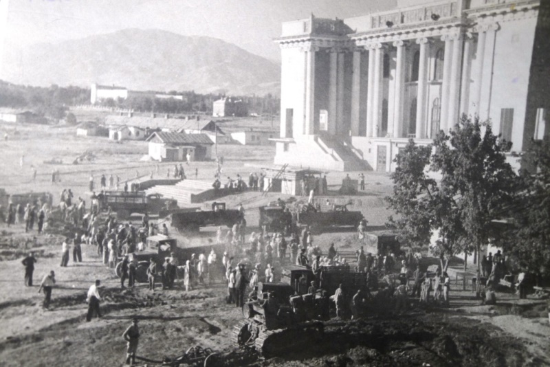 Весной 1938 года началось строительство театра — ставшего одним из архитектурных символов Душанбе.