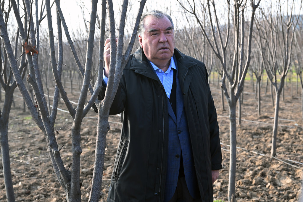 Президент Таджикистана Эмомали Рахмон и председатель Маджлиси милли Маджлиси Оли, мэр Душанбе Рустам Эмомали посетили питомник редких растений, цветов и кустарников ООО «Кишвари сабз», где ознакомились с выращиванием саженцев.