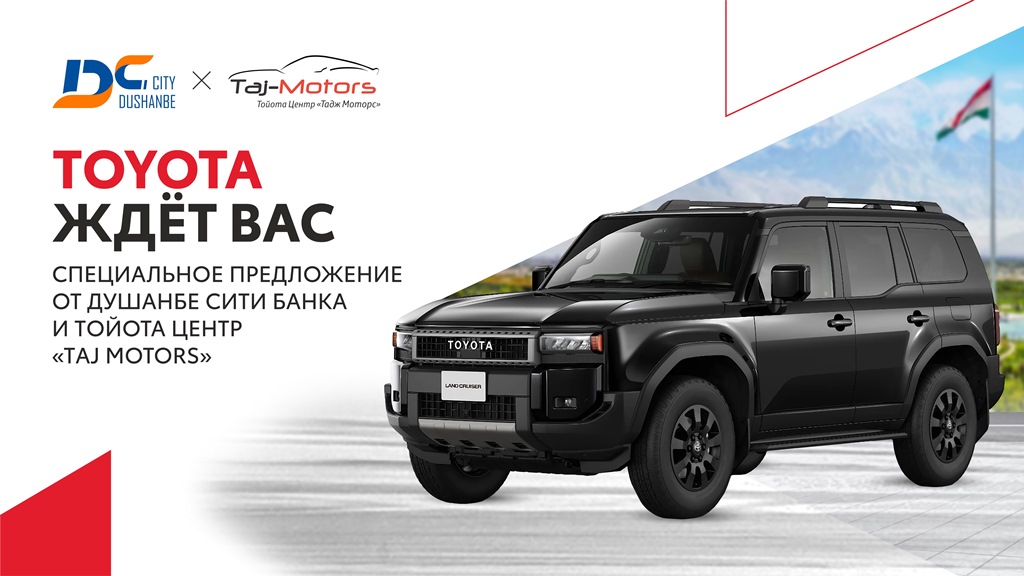 Тойота Центр «Taj Motors» предлагает эксклюзивный автокредит, который доступен только с «Душанбе Сити Банком». С его помощью вы можете приобрести автомобиль с минимальной процентной ставкой.