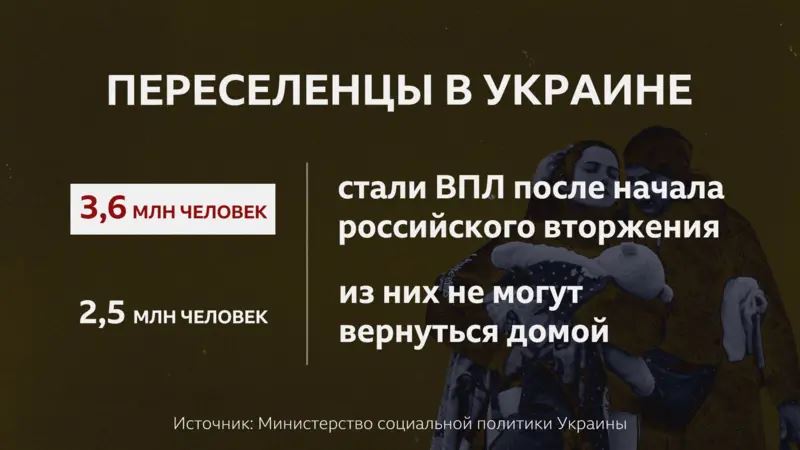 Из них 3,6 млн – это люди, ставшие переселенцами после начала войны. 2,5 млн из них не могут вернуться в свои дома, поскольку их жилье либо разрушено, либо расположено в зоне активных боевых действий, либо находится на временно оккупированной территории.