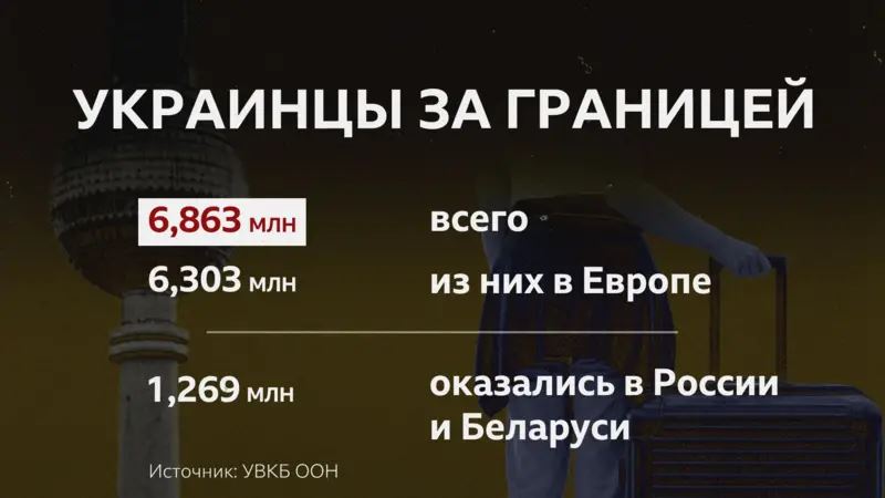 По данным Управления Верховного комиссара ООН по вопросам беженцев (УВКБ ООН), на середину января 2025 года в мире зарегистрировано почти 6,9 млн беженцев из Украины. Из них 6,3 млн оказались в Европе.