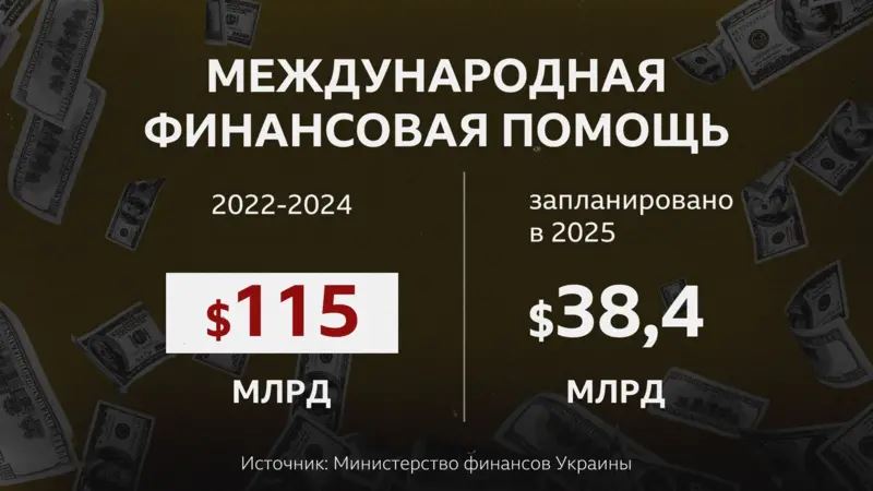 По данным министерства финансов, в 2024 году Украина получила около $41,7 млрдфинансовой помощи от партнеров. В 2022-2024 годах Украина получила от союзников более $115 млрд в бюджет.