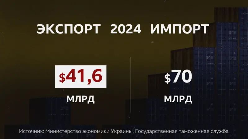 Впрочем, украинский экспорт по-прежнему значительно меньше импорта, который за 2024 год превысил $70 млрд. Но, как отмечают эксперты, здесь следует также учитывать и импорт, связанный с войной. В частности, оружие, оборудование, а также импорт электричества, на который Украина вынуждена идти из-за российских ударов по энергетической инфраструктуре страны.