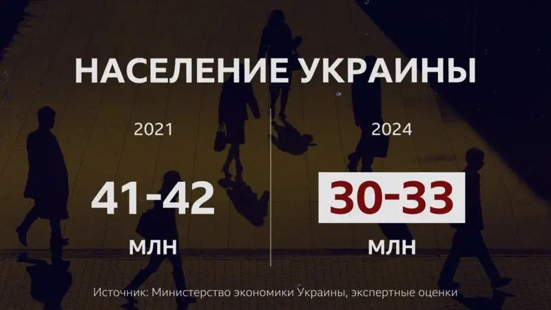 По состоянию на июль 2024 года, по данным, основанным на показателях трех украинских операторов мобильной связи, на территории, подконтрольной Украине, проживали 30 млн человек. Министерство экономики в своих макропрогнозах приводит более высокий показатель – 33 млн человек.