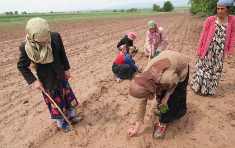 Работа этих женщин начинается с начала посевного сезона и продолжается до сбора урожая. Дилафруз зарабатывает 70-100 сомони в день, иногда ей дают и выращенную на поле продукцию. «Мы группа наемных рабочих, работаем сдельно. Что такое договор, я не знаю, но у меня есть земля, и у меня есть трудовая книжка, по которой я в будущем буду получать пенсию», – говорит она.