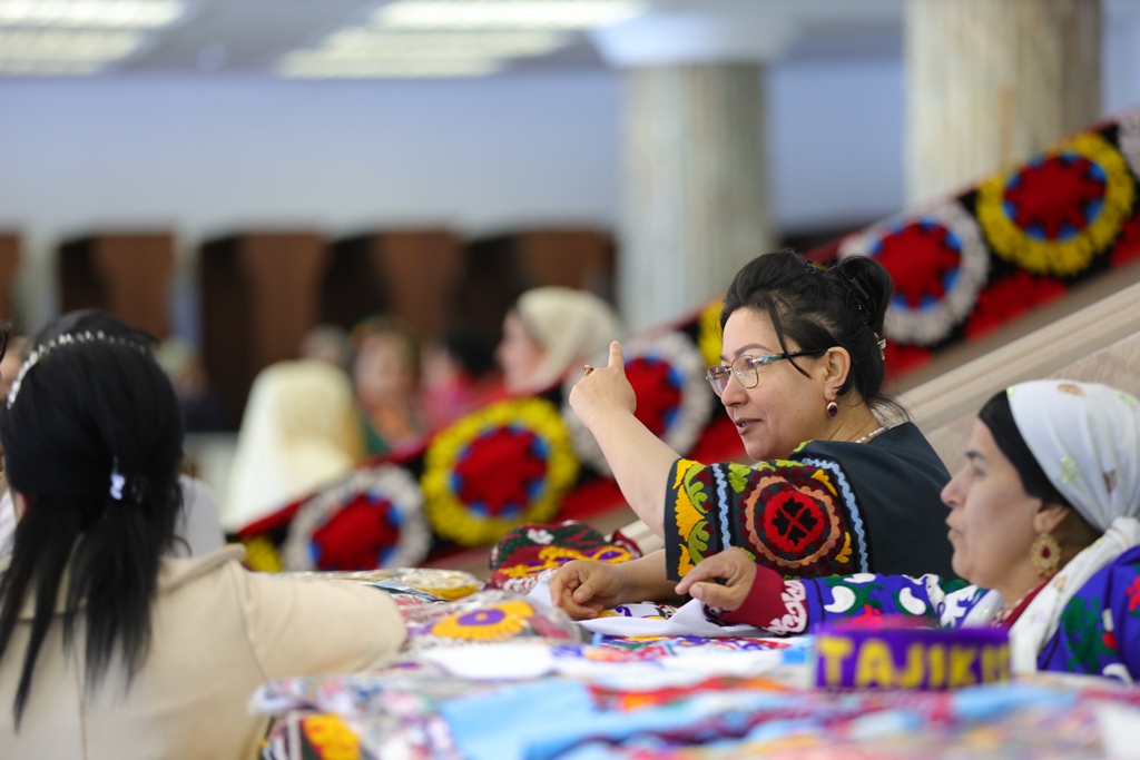 Заключительная церемония началась в праздничной атмосфере под звуки карная и дойры. В выставочном зале мастера из Согдийской и Хатлонской областей, ГБАО и РРП представили свои работы по ремеслу чакан, сюзане, машинной вышивке, бисероплетению, изготовлению тюбетеек, вязанию носков и созданию национальной одежды.
