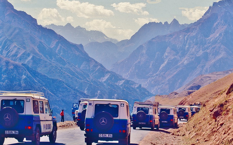 Караван из десяти бело-голубых Mercedes-Benz Международной автомобильной экспедиции ЮНЕСКО в октябре 1990 года можно было видеть на горных перевалах, в городах и селах республики. Основную часть участников автопробега составили ученые, бизнесмены и журналисты различных стран мира.