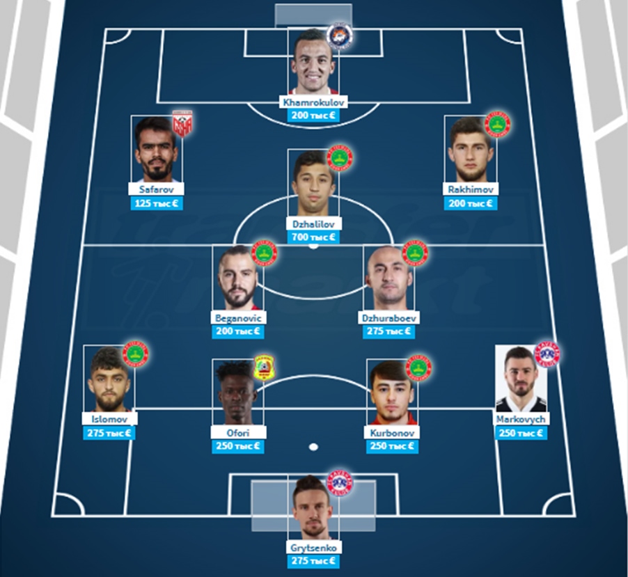 Самый дорогой состав высшей лиги Таджикистана был сформирован не исключительно из игроков «Истиклола». В нем представлено сразу пять клубов – «Истиклол», «Равшан», «Вахш», «Регар-ТадАЗ» и «Хосилот».
