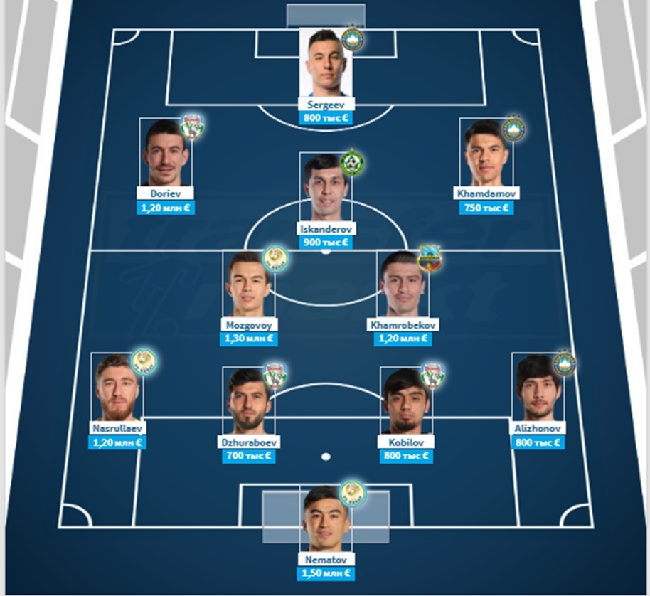 С началом нового сезона в двух лигах стран Центральной Азии портал Transfermarkt опубликовал самые дорогие составы из игроков чемпионатов Таджикистана и Узбекистана.