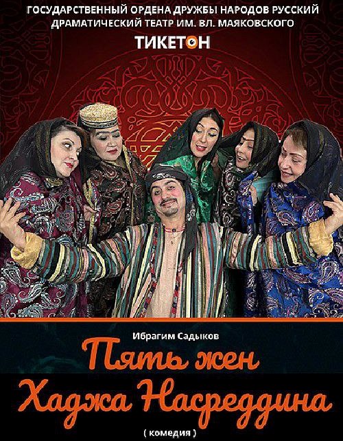 В Государственном русском драматическом театре им. В. Маяковского 25 марта в 16:00 состоится показ комедийного спектакля «Пять жён Ходжа Насреддина» по пьесе И. Содикова в постановке заслуженного деятеля искусств Республики Узбекистан Олимжона Салимова.