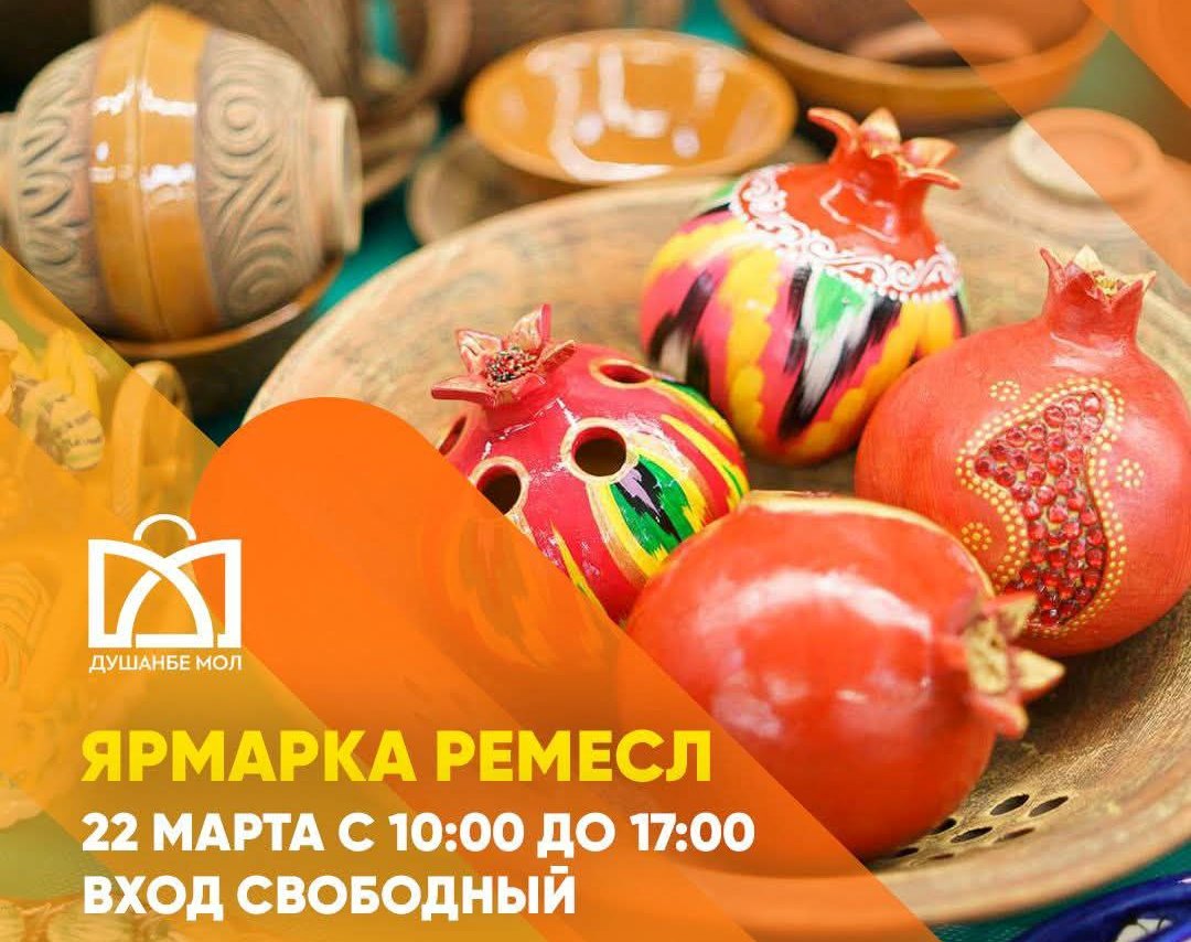 В холле Душанбе Молл (перед Ашаном) 22 марта с 10:00 до 17:00 пройдёт выставка-ярмарка ремесленников и хендмейдеров. Здесь вы найдёте: изделия из атласа и адраса, керамические изделия, деревянные изделия, крафтовое мыло и многое другое. Это уникальная возможность приобрести праздничные подарки родным и близким!
