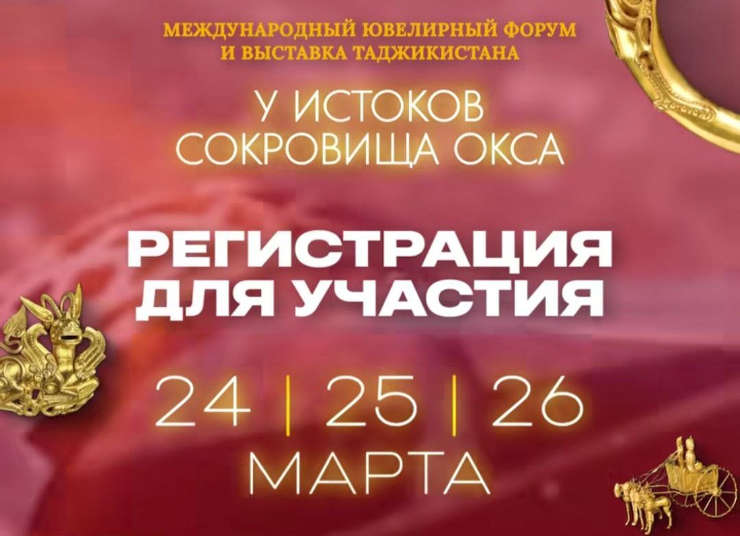 В Душанбе в отеле Hyatt Regency Dushanbe а также в международном выставочном центре Dushanbe Expo Centre с 24 по 26 марта пройдёт Международный ювелирный форум и выставка Таджикистана «У истоков сокровищ Окса».