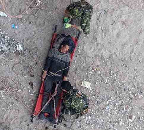 Спасатели прибыли на место происшествия после сигнала, поступившего на пульт дежурного. Они использовали страховочную веревку, чтобы добраться до пострадавшего, погрузили его на носилки, обвязали веревкой и вытащили из реки.