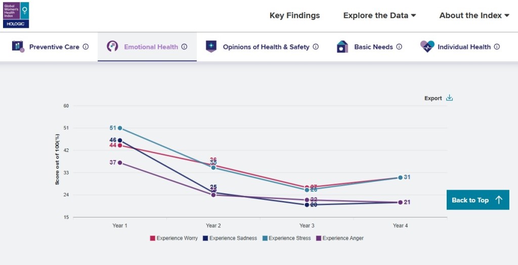 В показателе по эмоциональному здоровью страны ранжируются на основе переживания женщинами негативных эмоций, таких как тревога, грусть, стресс и гнев.