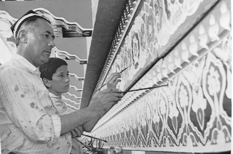 Потолок второго этажа здания чайханы расписали: У. Мукадасов, С. Нуриддинов, В. Розанов при участии А. Терехова. Резьба по дереву второго этажа выполнена художником С. Нуриддиновым.