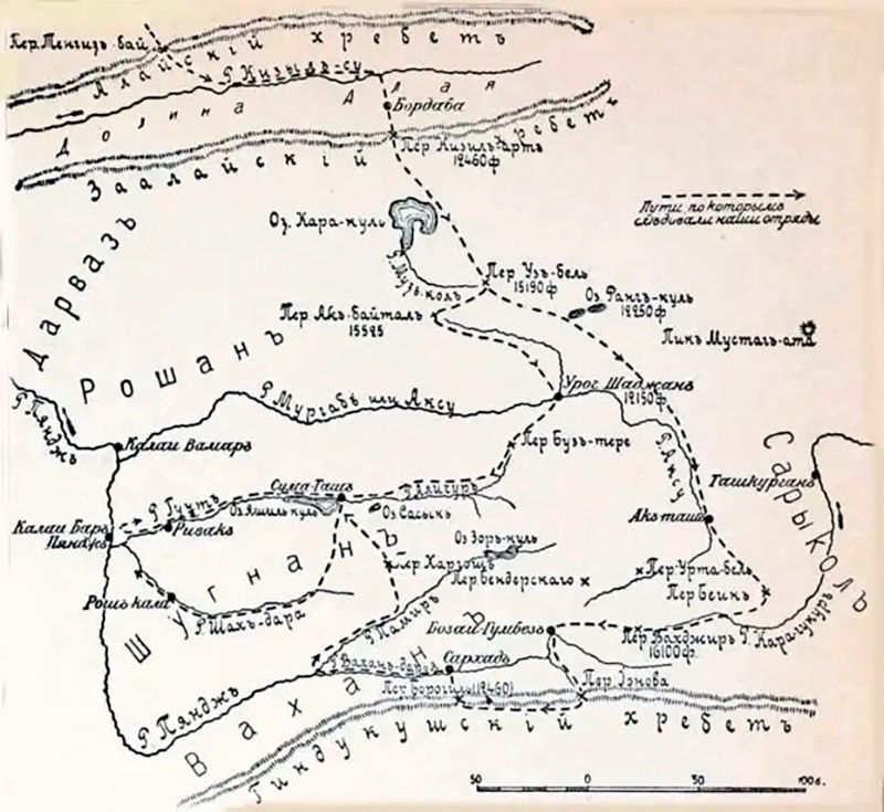 Сюда же, вниз по течению реки Бартанг, летом 1893 года отправился рекогносцировочный отряд под командованием штабс-капитана гвардии Сергея Ванновского в количестве всего десяти рядовых чинов, двух офицеров и нескольких проводников. Тагеев пишет: