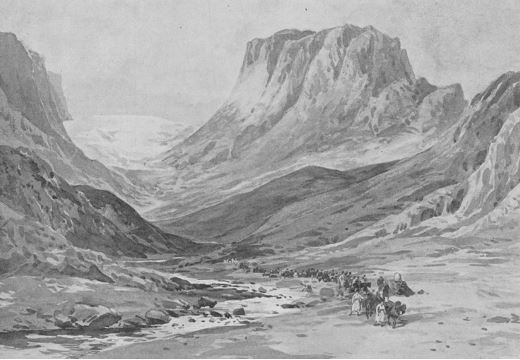 «Дорога тянулась широкою долиною, окаймленною довольно высокими горами, и поднималась террасами в гору. Встречный ветер крутил целые облака мельчайшего песку, что являлось одним из самых значительных препятствий для движения пехоты… Песок засорял глаза, трещал на зубах, набирался в нос и уши, которые так заложило, что невозможно было слышать собственных слов… Вода была давно выпита, а по пути не попадалось ни одного ручейка… У многих болела голова, а во рту засох язык. Появилось много отсталых».