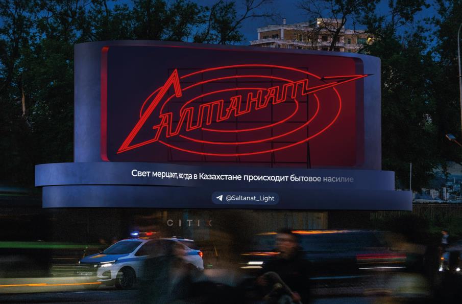 В центре проекта – алая неоновая вывеска «Салтанат», созданная в Алматы в 1960-х годах и расположенная напротив Президентского парка. Она мигает каждый раз, когда система фиксирует случаи бытового насилия. Одновременно сигнал отображается на более чем 100 цифровых экранах Citix по всему Казахстану.