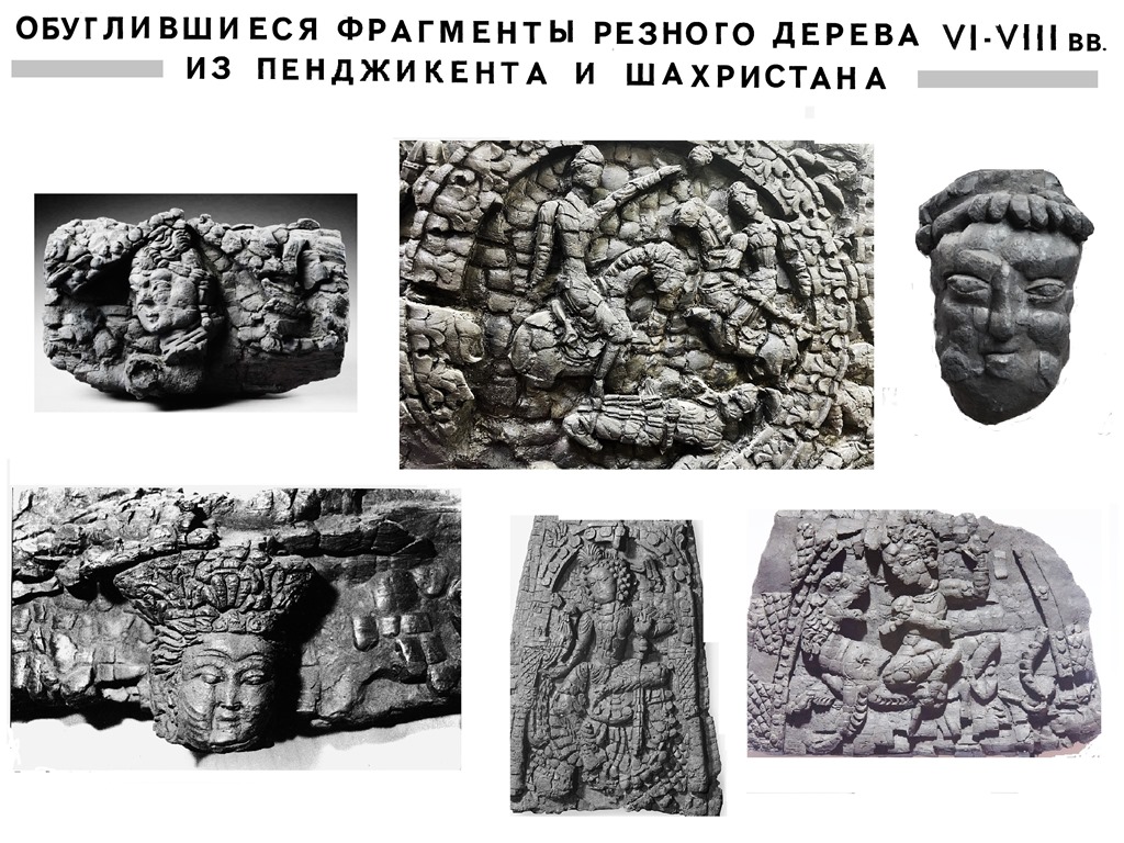 Благодаря обширным археологическим работам, проводимым в древнем Пенджикенте и Шахристане в 1950-80 гг. детально изучены фрагменты резного дерева, вернее, образцы, которые сохранялись в случае пожара, при котором дерево прогорало без доступа кислорода и превращалось в древесный уголь.