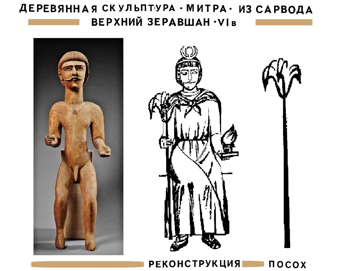В1980-е годы в пещере близ селения Сарвода была обнаружена метровая деревянная фигура, облачённая в доспехи доисламского идола с жезлом в руке, которого исследователи отождествляют с древнеиранским богом Митрой. В «Авесте» есть строки о Митре, который достиг «золотистых вершин, откуда видит он весь арийцев край и среди которого Гава, что в Согдиане». Не исключено, что это самое раннее упоминание верховьев Зеравшана. География, отраженная в «Авесте» еще раз подчеркивает районы формирования зороастризма.