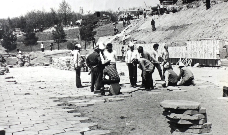 К 19 апреля 1975 года было завершено строительство и обустройство Площади скорби с Вечным огнем и Аллеи Героев, а строительство скульптуры Родина-мать, высотой 40 метров с каскадом бассейнов, перенесли на другое время.