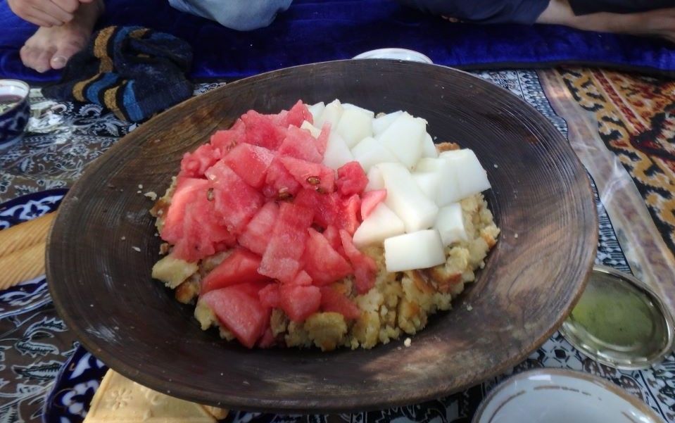 Блюдо готовят из слоеной лепешки (фатир), топленого масла. Сверху это всё украшается кусочками дыни, арбуза или винограда.