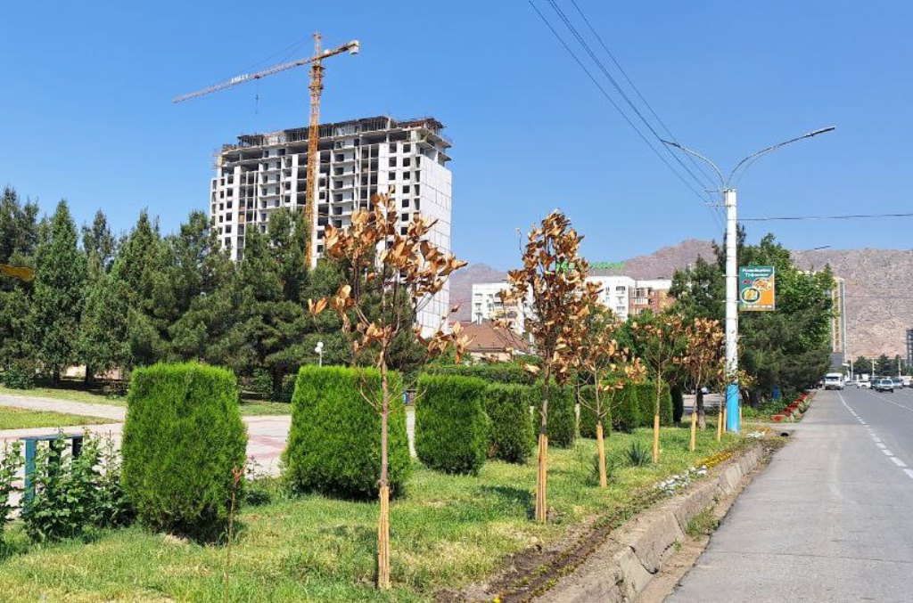 «Они не высохли, они живые. 268 саженцев магнолий привезли из Италии, они были в дороге 15-20 дней, поэтому они сбрасывают листья», – сказал Саиджон Маруфов, начальник Худжандского городского государственного предприятия по озеленению и цветоводству.