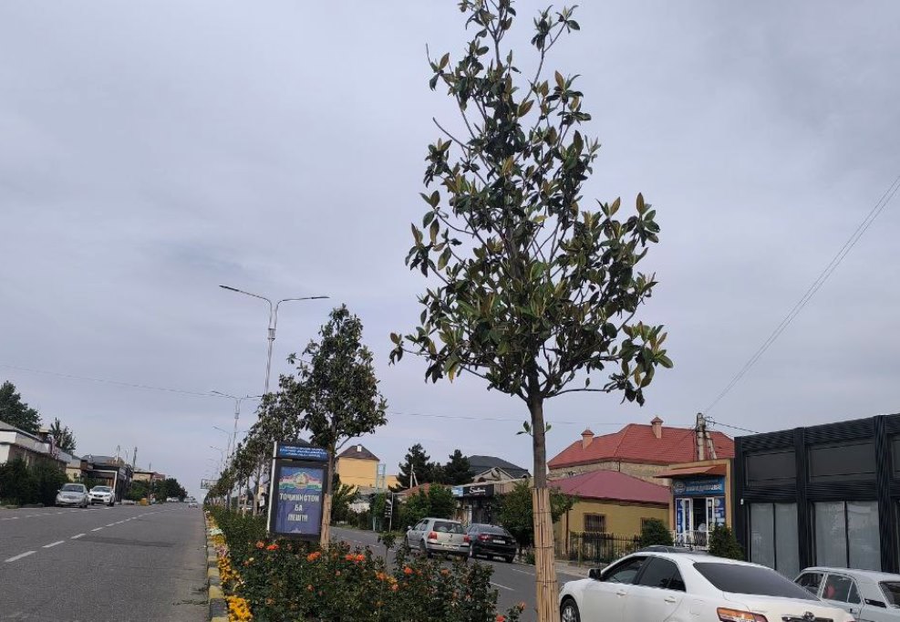 Наши наблюдения с улицы Мира в Худжанде также подтвердили, что деревья магнолии зеленые. Эти деревья были посажены около четырех лет назад.