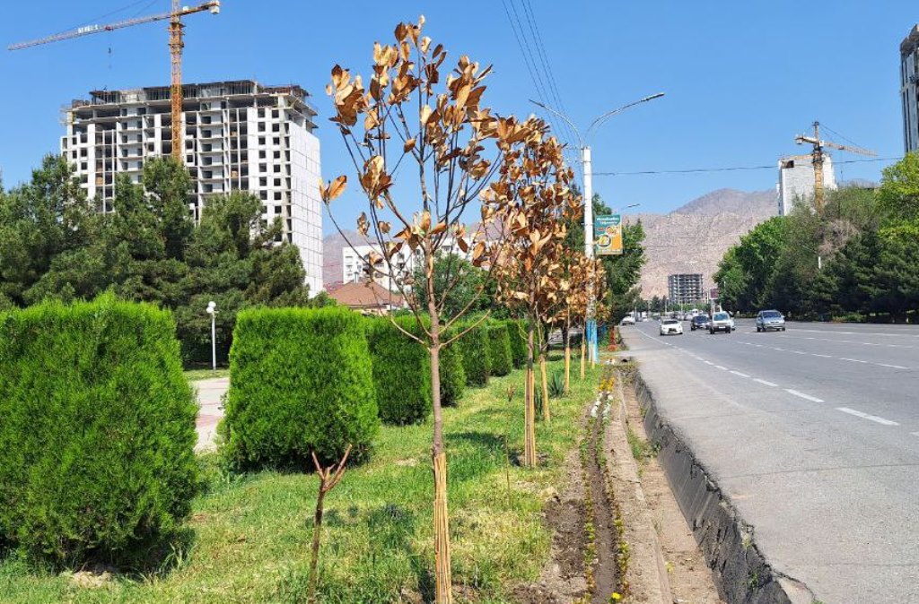 «Они не высохли, они живые. 268 саженцев магнолий привезли из Италии, они были в дороге 15-20 дней, поэтому они сбрасывают листья», – сказал Саиджон Маруфов, начальник Худжандского городского государственного предприятия по озеленению и цветоводству.