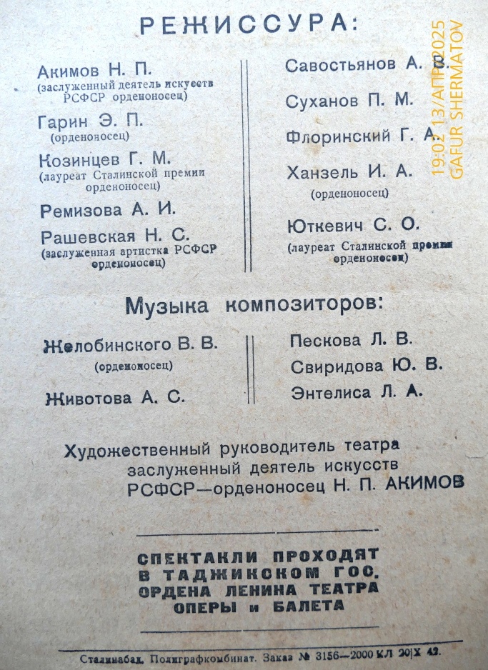 А ещё Сталинабад стал прибежищем для многих десятков тысяч эвакуированных. Среди них значительную долю составляли выдающиеся деятели культуры и искусства, в том числе целые театральные коллективы.