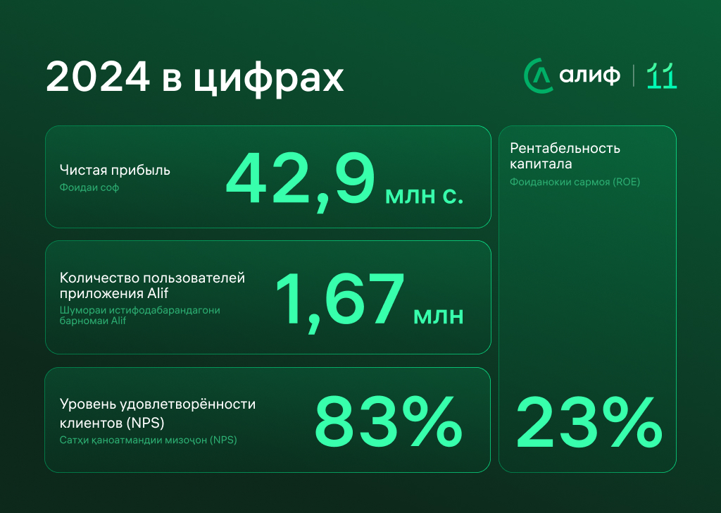 29 апреля 2025 года «Алиф» отмечает своё 11-летие. За эти годы он прошёл путь от офиса с тремя сотрудниками до ведущей технологической финорганизации, задающей стандарты цифровых финансов в Центральной Азии.