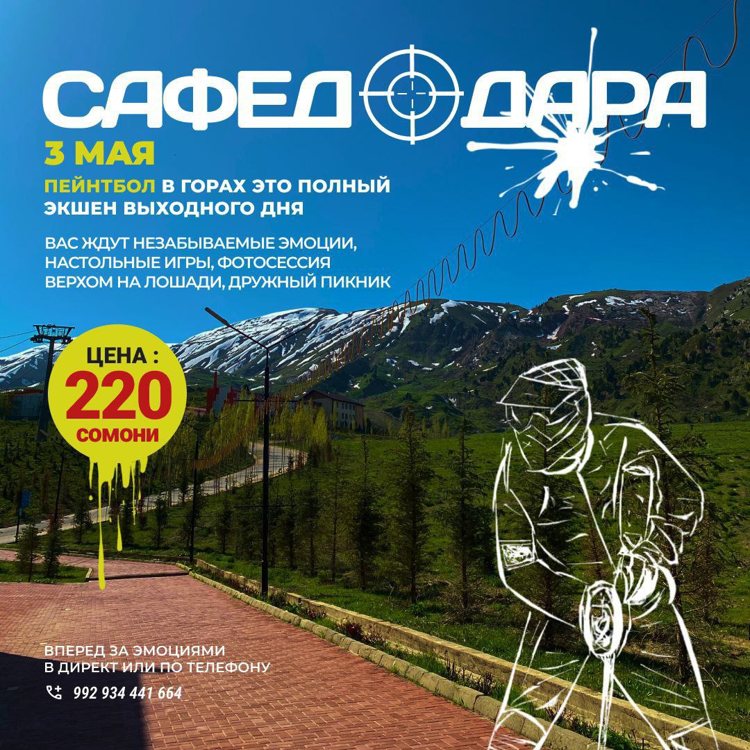 Стоимость тура: 220 сомони. В комплекте: трансфер, гид, каремат, пейнтбол (экипировка и 150 патронов).