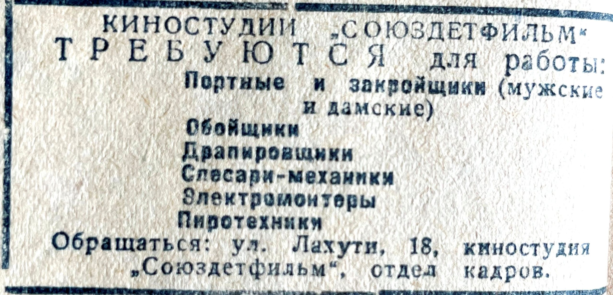 Эвакуация технического оснащения киностудии «Союздетфильм» осуществлялась не только из Москвы, но и со съемочных площадок студий в Ялте, Ульяновске, Уфе, Одессе и Борисоглебске. Все эшелоны с оборудованием киностудии «Союздетфильм» направлялись в Сталинабад. Доставка оборудования была завершена к концу декабря 1941 года.