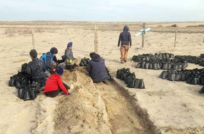 «Саксаул – уникальное растение, оно помогает остановить движение песка, а также восстановить экосистемы Арала. В рамках нашего проекта "100 микропитомников" мы вовлекаем местное население, чтобы они могли высаживать саксаул и создавать кооперативы для выращивания саженцев с закрытой корневой системой», – делится Зауреш.