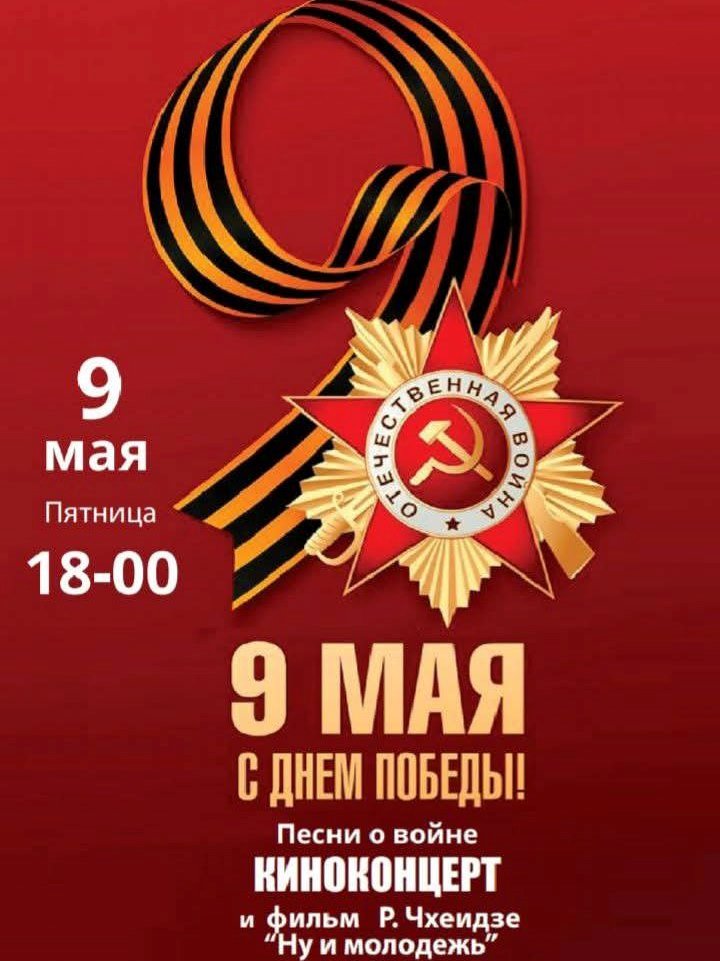 В грузинском кафе «У Нукри» 9 мая в 18:00 пройдёт праздничный вечер, посвященный Дню Победы. В программе – старые добрые военные песни и показ фильма 1969 года Р. Чхеидзе «Ну и молодёжь». Приходите, чтобы отметить этот день в уютной и тёплой атмосфере